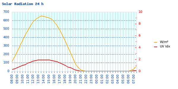 Today, solar radiation reached to over 200 W/m², though sky was not even completely clear! It has to do with the sun rising higher and higher on the sky each day on our latitudes. Tempest has now been fully powered for many days, which is great. It is unlikely it will drain its batteries until November–and by that time, an external power supply should be available for it.